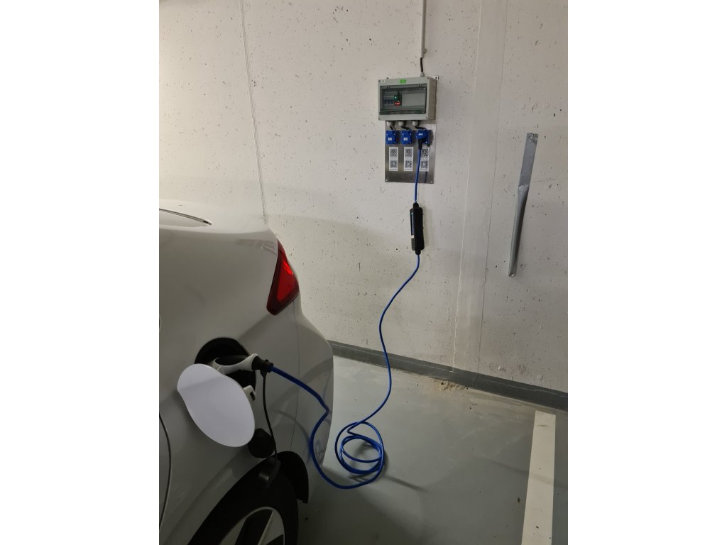 Deska se 3ks zásuvek 230V-16A (3.68kW) pro jednoduchou montáž na zeď. Sestava umožní nabíjení až tří elektromobilů rychlostí cca 200km za 8h což bývá cca 50% kapacity baterie moderních elektromobilů. Sestava je určena především pro noční pomalé nabíjení v ubytovacích zařízeních, kempech, bytových domech, firmách nebo u sportovních a rekreačních areálů, kde zákazníci tráví celý den.